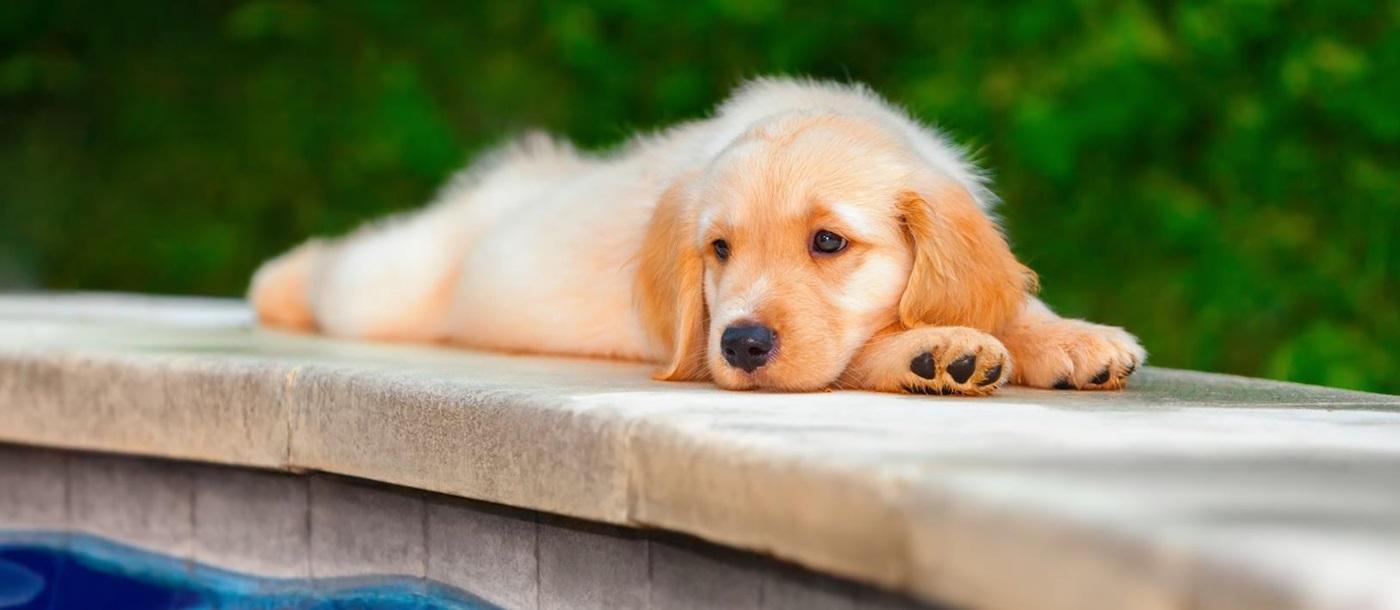 Vorsicht am Pool – Hunde sollten wegen Chlor und Filteranlage nicht hineinspringen,